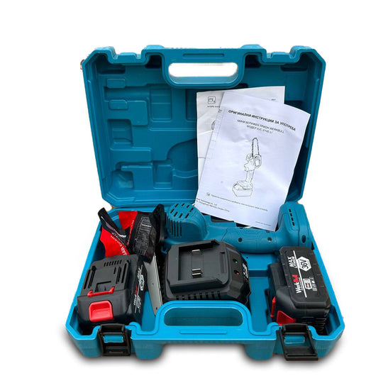 Acest mini fierăstrău cu lanț fără fir este partenerul ideal pentru grădină, curte și atelier. Perfect pentru tăierea lemnului, toaletarea pomilor sau lucrări de bricolaj. Ușor, sigur și extrem de puternic!