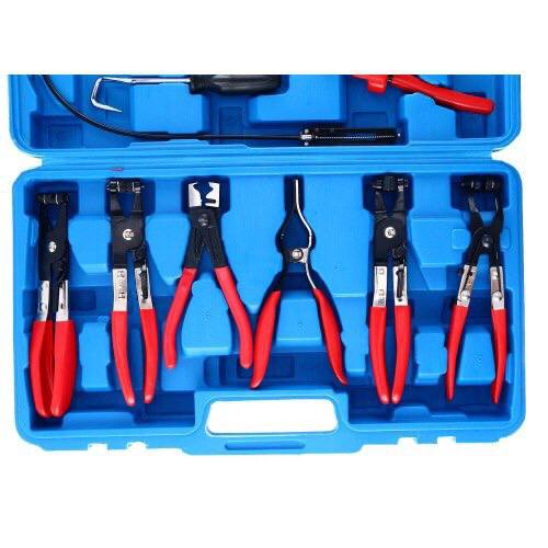 Set complet de clești speciali pentru montarea și demontarea colierelor de apă și combustibil, ideal pentru ateliere auto, mecanici și pasionați de reparații. Fabricat din oțel carbon călit și acoperit cu strat anti-coroziune, oferă durabilitate, precizie și confort maxim în utilizare.