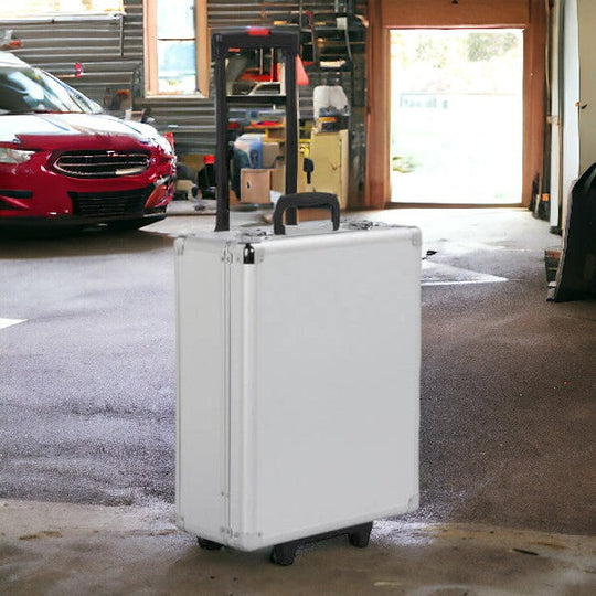 Designul pe roți cu mâner telescopic îl face extrem de practic pentru transport, fie în garaj, fie la drum.