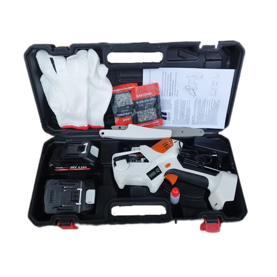 Новият 2024 акумулаторен верижен трион e захранван с мощна батерия от 36v, която издържа до 360 рязания преди да се зареди отново. Той е високоефективен и с ниско ниво на шум при работа. За разлика от другите марки и модели, нашата резачка е изцяло фокусирана в предпазването на клиентите ни при работа, затова има предпазител с дължина 15см с цел максималната им безопасност. Меката ръкохватка предпазва от приплъзване. Мотърът и е безчеткова, което предполага по-дълъг период на активност. Има регулируемо автоматично смазване на веригата, както и индикатор за нивото на маслото в резервоара. Веригата се настройва и опъва безпроблемно и не е необходимо да разполагате с инструмент. Спирачката се активира с помощта на предния предпазител за ръката. Ниското ниво на шум прави инструмента подходящ за използване на обществени места или в жилищни комплекси. Удобната предна ръкохватка и ергономичният корпус идеално пасват на ръцете на потребителя и осигуряват по-голям комфорт и ефективност по време на работа с инструмента. Трионът пристига в комплект с два броя вериги и батерии. Подходяща е както за любители, така и за професионалисти!
