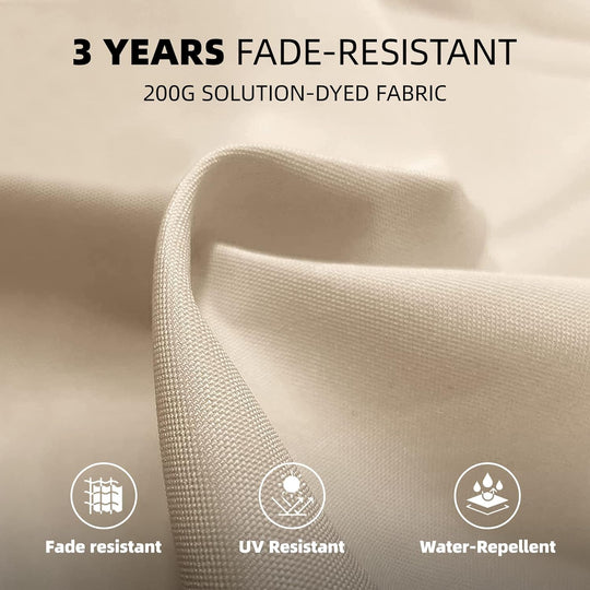 Висококачествен материал: Повишете левела на обзавеждането на вътрешния си двор с този висококачествен осветен чадър с балдахин, изработен от 200гр боядисана в разтвор полиестерна тъкан. Този материал е не само издръжлив и дълготраен, но и устойчив на ултравиолетови лъчи, предпазвайки ви от вредните слънчеви лъчи. В допълнение, сенникът е устойчив на избледняване или износване до 3 години, което гарантира, че вашият чадър ще запази живия си цвят и външен вид.