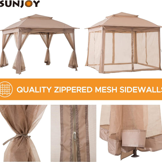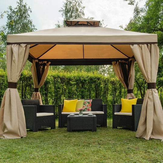 Fabricat din materiale premium, acest foișor oferă o protecție completă împotriva razelor UV, a ploii și a insectelor, fiind ideal pentru utilizare pe tot parcursul verii.