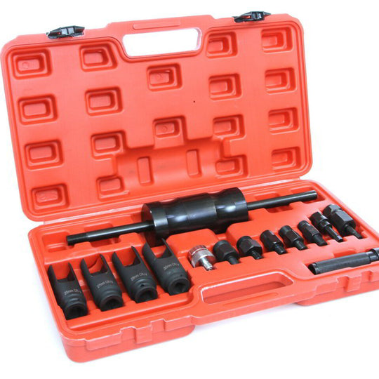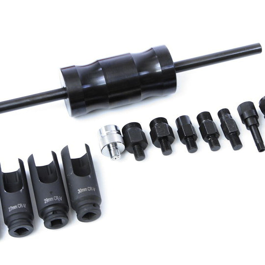 Echipamentul include un ciocan invers (slide hammer) robust, cu masă de inerție de aproximativ 4 kg, asigurând o forță de extracție mare fără a deteriora injectorul sau chiulasa.