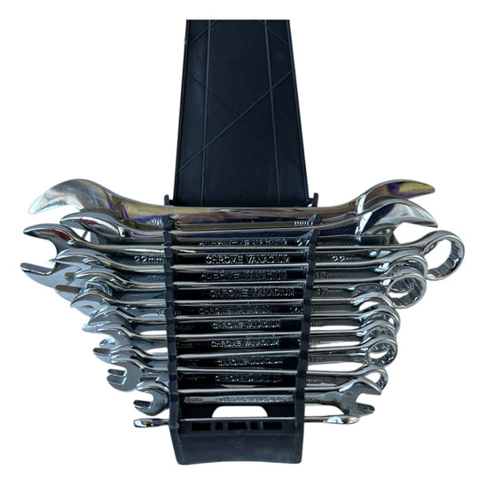 Set profesional de chei fixe și inelare WerkBull, fabricat din oțel crom-vanadiu de înaltă calitate, ideal pentru ateliere, service-uri auto și uz casnic. Durabile, rezistente la torsiune și coroziune, aceste chei oferă precizie și confort la fiecare utilizare.