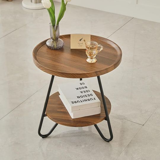 Adaugă stil și funcționalitate oricărui spațiu cu această măsuță rotundă elegantă cu două blaturi. Ideală pentru living, dormitor, birou sau balcon, combină designul modern industrial cu căldura lemnului și rezistența metalului.
