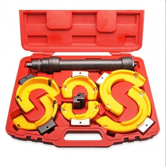 Set profesional conceput pentru compresia sigură a arcurilor elicoidale la sistemele de suspensie tip MacPherson. Ideal pentru ateliere auto și mecanici profesioniști, aceste scule asigură demontarea și montarea rapidă și sigură a amortizoarelor fără risc de accidentare.