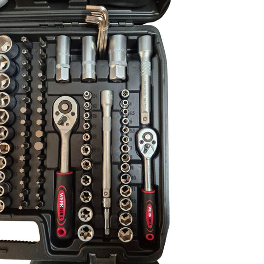 Setul complet de scule WerkBull Germany 216 piese este alegerea perfectă pentru profesioniști și pasionați. Include tot ce ai nevoie pentru lucrări mecanice, auto sau casnice – de la chei cu clichet, tubulare și biți, până la chei combinate cu clichet 8–22 mm. Toate piesele sunt fabricate din oțel crom-vanadiu (Cr-V), garantând durabilitate, precizie și rezistență extremă la uzură.